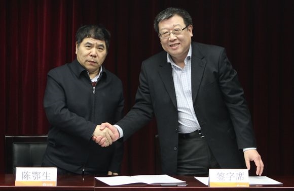 集團(tuán)黨委書(shū)記、董事長(zhǎng)陳鄂生與皮革院黨委書(shū)記楊承杰簽訂黨風(fēng)廉政建設(shè)責(zé)任書(shū)