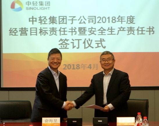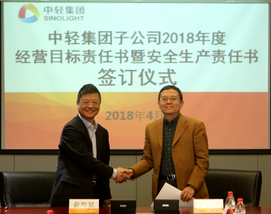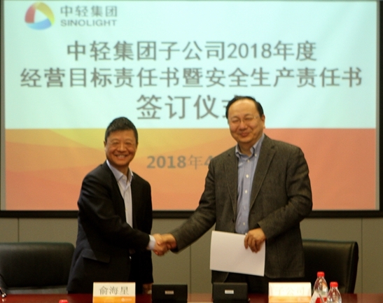 此次經(jīng)營目標責(zé)任書和安全生產(chǎn)責(zé)任書的簽訂是對中輕集團2018年總體生產(chǎn)經(jīng)營任務(wù)和安全生產(chǎn)任務(wù)的貫徹和落實。
