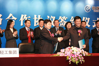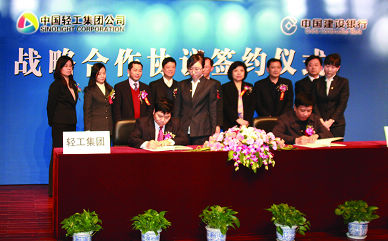 2月1日,中國輕工集團(tuán)公司與中國建設(shè)銀行股份有限公司北京市分行50億元戰(zhàn)略合作協(xié)議簽約儀式在北京隆重舉行,集團(tuán)公司總經(jīng)理陳鄂生、建行北京分行行長王軍分別代表各自企業(yè)出席儀式并簽署了戰(zhàn)略合作協(xié)議。雙方還將在資金結(jié)算、資金管理平臺(tái)、財(cái)務(wù)顧問服務(wù)以及其他金融服務(wù)等方面深化合作,這標(biāo)志著雙方的合作將邁上更高的臺(tái)階。集團(tuán)公司副總經(jīng)理俞海星、集團(tuán)公司總會(huì)計(jì)師郭建全以及建行北京分行副行長龔毅、宣武支行行長劉發(fā)猛出席簽約儀式。