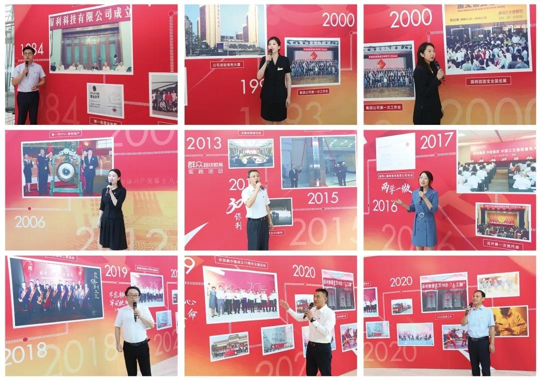 在國歌奏唱聲中,活動拉開帷幕。來自不同業(yè)務(wù)板塊的9名黨員接力講述保利故事,在他們的講述下,集團(tuán)公司36年發(fā)展史徐徐展開。