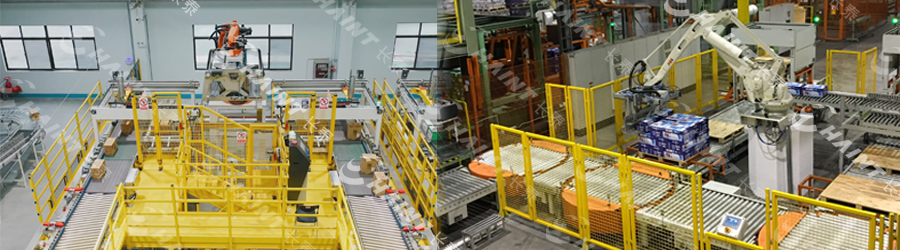 箱件智能碼垛系統(tǒng)用于代替人員完成紙箱碼垛工作,把勞動力從簡單繁重的勞動中解脫出來,同時在保證在安全的前提下實現(xiàn)高效工作,設計碼垛速度達1800箱/小時。與人工碼垛相比,機器人碼垛更加整齊,搬運過程中對紙箱的損耗更小。
